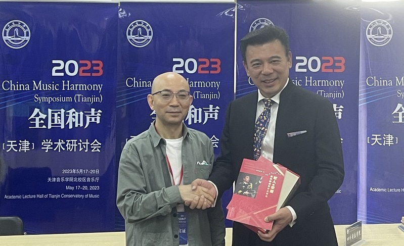在5月19日下午的“作曲专业和声主课教学研讨交流”活动中,高畅教授介绍了我系的主科和声教学情况并同参会老师们展开了讨论,我系吴志闹老师和音基部黄珩老师也参加了该活动。高畅教授作为本次研讨会的学术委员会委员,于5月20日下午主持了本次活动的最后一场交流研讨会。在5月20日下午的闭幕式颁奖仪式中,高畅教授的论文还获得了主办方颁发的荣誉证书。闭幕式结束后,高畅教授代表作曲系主任郭元教授,与天津音乐学院作曲系系主任张海峰教授进行了赠书仪式,将我系参加成果展示活动的系列书籍赠予天津音乐学院图书馆。