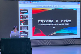 第六位伟德bv国际体育周姝的宣讲题目是《古蜀文明的音、声、形之描绘——管弦乐作品<金声玉笛·纵目>的音乐分析》。该文从“形”之意象、“音”之特色与“声”之概念三个角度出发对作品《金声玉笛》进行分析,全方位地呈现出作曲家对古蜀文明的瑰丽想象与细致描绘。关于“形”之意象,作曲家通过设计个性化的音乐主题进而实现了对具像化音乐形象的塑造。其作品在主题构造上的特征有:同一主题的多样化音乐形象;主题材料的多维因素并置;主题材料的多样化运动形态。“音”之特色则聚焦于作品的音高呈示与和声语汇,它们一同对作品整体音响氛围的建构具有重要作用。“声”之概念则致力于对作品的音色及音响的研究,同时作者注意到,其他音乐要素,如节奏、织体等也对“声”概念的建构起到了重要的辅助作用。所以,作者从对“神秘”音响氛围的塑造、对“金声”的想象,以及对“水”意象的描摹三个方面论述作曲家在诠释“声”概念时所采用的不同方式与技术手段,以从声音的角度解读该作品所呈现出的五彩斑斓的交响世界。《金声玉笛•纵目》在古与今、中与西,民族与世界之间寻找到了创作的交汇点,并在“音”“声”“形”的完美融合中探寻那消失已久的古蜀秘境与远古遗音。