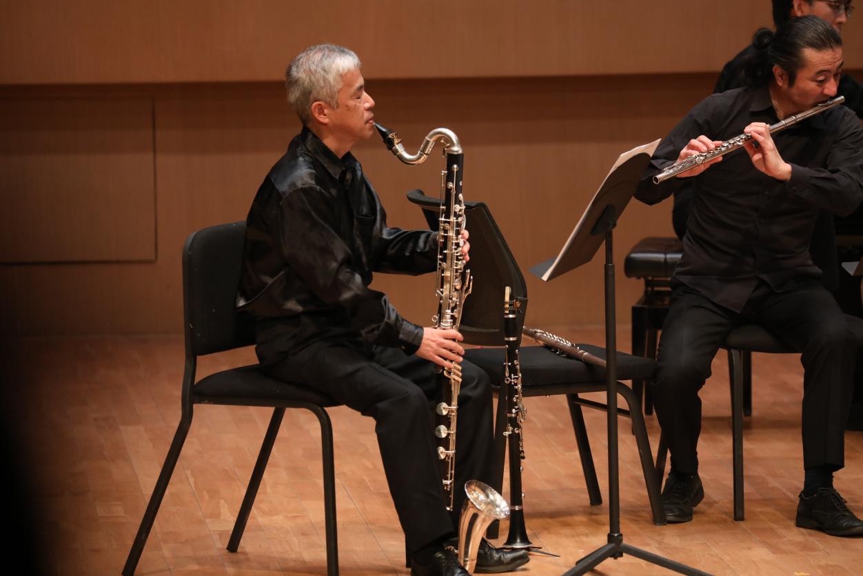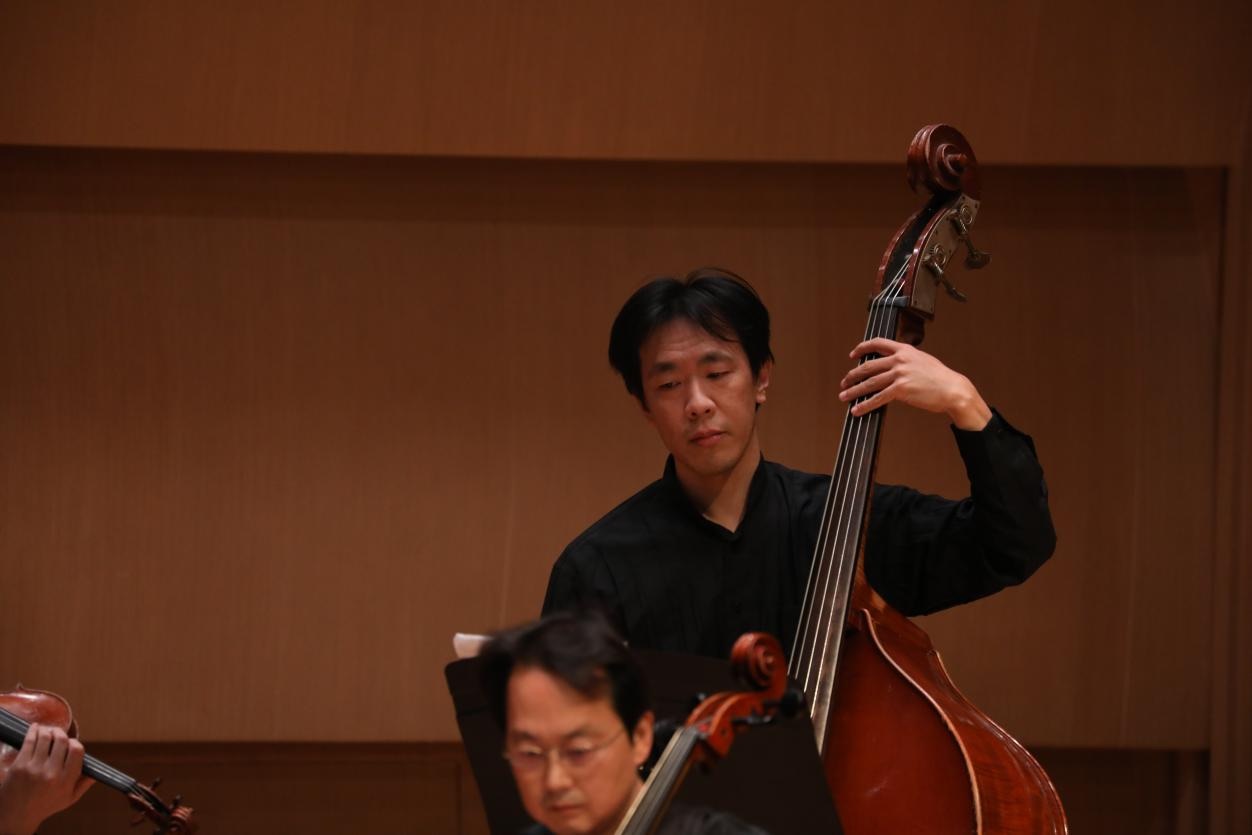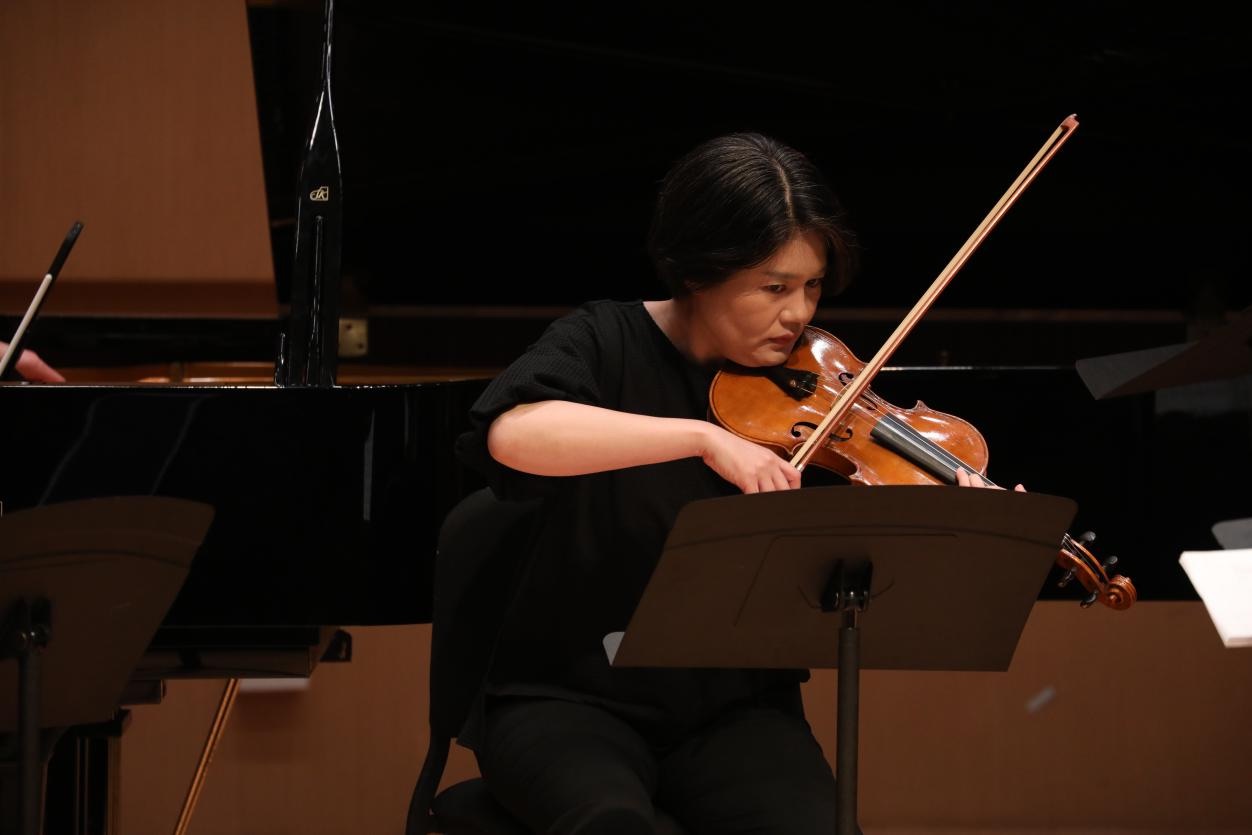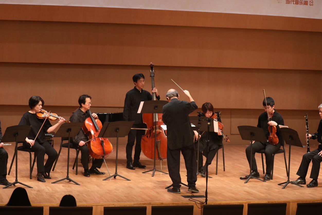 在热烈的掌声中,指挥家佐藤纪雄带领NOMAD乐团走上舞台。第一部作品为Tres cantos para la dualidad sonora,为小提琴与钢琴而作,由小提琴演奏家花田和加子与钢琴演奏家田中翔一郎演绎。作品标题源自于西班牙语:为声音的二元性而作的三首圣歌。作者从二元性的思考角度展开,为听众带来了三幅纯粹、精巧的声音的诗篇。