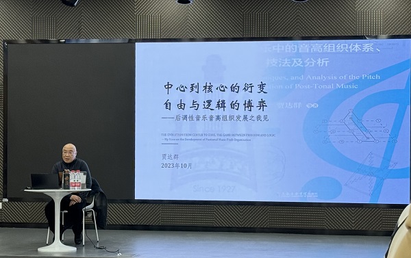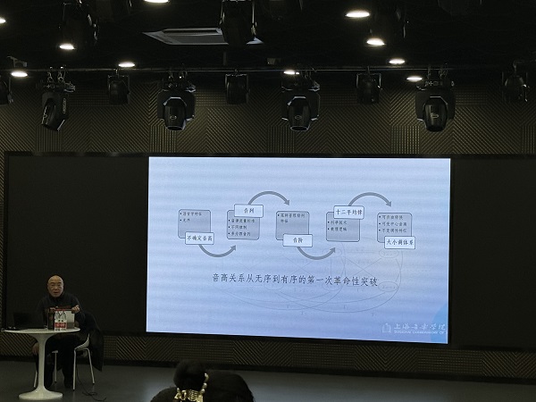 此次讲座包含两个部分,第一部分是聚焦于当代专业音乐创作之音高组织发展逻辑轨迹的论述;第二部分重点介绍《后调性音乐中的音高组织体系、技法及分析》一书的学术价值,并对各章进行了导读性的点评。