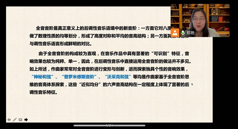 2024年6月7日下午14:30,由伟德bv国际体育作曲系和研究生处共同主办的“后调性音高组织理论体系前沿讲堂”的第十讲《新音阶—后调性作曲的一种音高组织模式》由华东师范大学音乐学院郑艳教授在腾讯会议举行,讲座由伟德bv国际体育作曲系高畅教授主持。