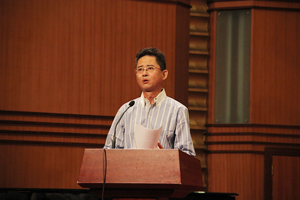 “四川省优秀教师”荣誉获得者、管弦系主任李开祥教授发言。他说,教师应该把教育当作一项事业,从对每一节课的悉心备课,对每一个学生的因材施教做起。要以学生的成人、成才为己任,努力修养心性,提高政治思想水平和道德修养,努力提升自己的专业水平和教学能力,向学校要求的“双师型”教师迈进。学校正值深入开展教育实践活动,我们更需要保持一份清醒,保持一份沉静,保持一份真挚,保持一份热情,扬师德、树师风、铸师魂。