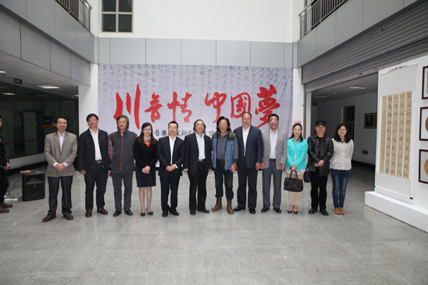 军训结业典礼后,校领导前往美术学院参观“川音情·中国梦”首届书法作品展。