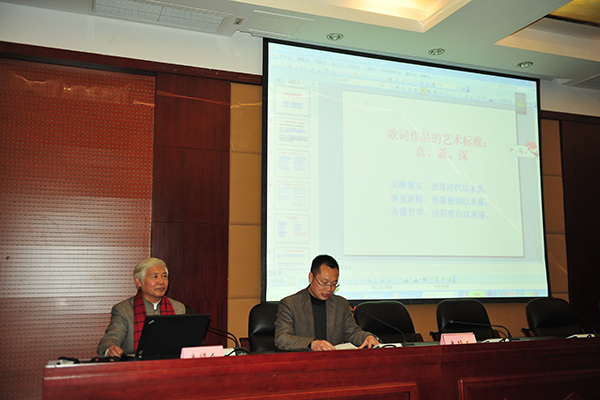3月7日,国家一级词作家、歌词评论家魏德泮先生以其歌词创作的丰富经验与理论研究的累累硕果,为师生们带来了一场《歌词作品的艺术标准——真、新、深》专题讲座。魏德泮先生提出,歌词创作要“反映现实、表现时代以求真;感觉新鲜、形象独创以求新;弄懂哲学、活得明白以求深”。他又分别从 “真”、“精”、“深”三大艺术标准作进一步阐述:“真”在于揭示本质、传神逼真,要贴近时代,贴近实际,讲真话,讲人民想说的话;“新”是对歌词形式与内容的要求,创作出独特的新鲜的语言,表现生命的独特体验,是歌词创作的核心奥秘;“深”是对人性深度的开掘,要学习哲学,反思现实人生。