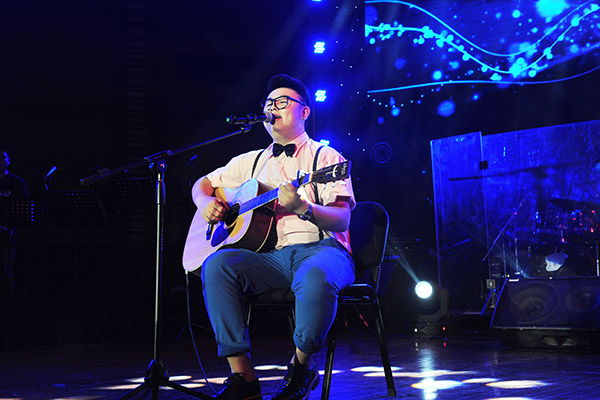 5月24日,“川音杯”流行演唱大赛正式初赛。历经严格、激烈的初赛、复赛和半决赛的选拔,15名选手晋级总决赛。6月18日总决赛。当天,伟德bv国际体育大音乐厅座无虚席,选手们的精彩表演让观众大饱耳福。其中,飞鱼组合合唱《Say Something》和声悠扬,犹如天籁;Neo retro乐队的原创《功夫》和十一乐队的原创《Can’t Believe it》热情激昂、气势磅礴;选手王冰洁改编的爵士版《别找我麻烦》风格饱满,清新自然;李俊龙演唱的《Talk dirty》和涂浩林的《It’s a man ‘s world》霸气十足,震撼全场;还有温蕊尔的原创吉他弹唱《living in my dream》,张伟杰改编的《Troublemaker》,魏艳秋的《寂寞先生》,郑兴琦的《慢慢地》,吴奇的《她说》。15名选手充分展示了良好的创作能力和高超的演唱水平,让观众领略了选手们多姿的才艺和青春的热情。