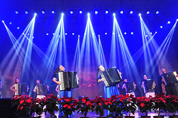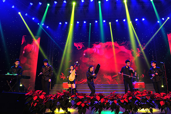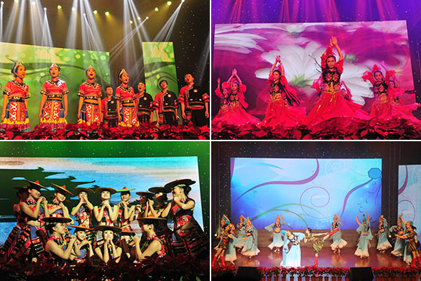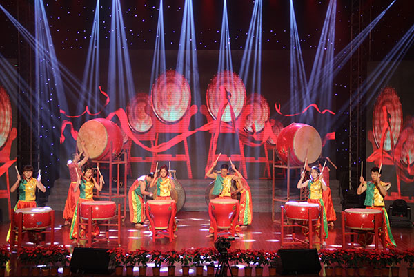 晚会在激昂的鼓声中拉开序幕。本次晚会结合了歌舞、舞台剧、小品等多种表演形式,学子们以悠扬歌声和妙曼舞姿表达了不忍离别的无尽感慨和对母校、恩师的美好祝愿,淋漓尽致地展示了川音学子的的独特风采。由我院院长林戈尔教授作曲、毕业生林子默演唱的《阳光下的中国》更是把整场晚会推向了高潮。最后由副院长孙洪斌教授和青年教师郑仁清作曲的合唱歌曲《为祖国歌唱》为晚会划下了完美的句号。