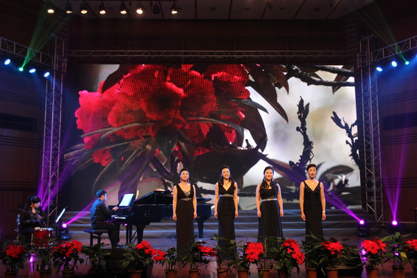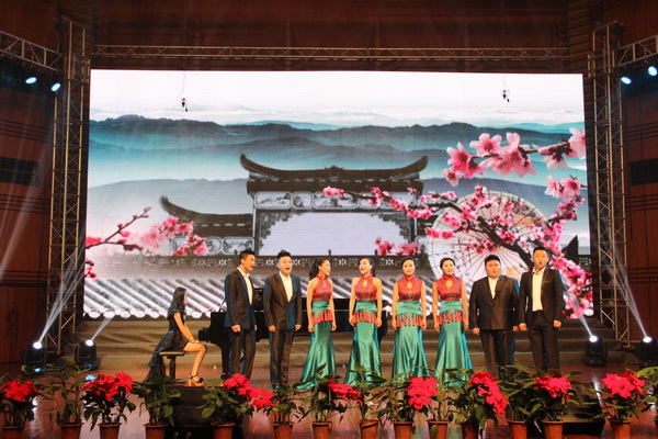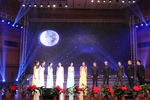 晚会在《怒吼吧!黄河》的激昂旋律中开场,整台晚会显示了极高的艺术水准。《念奴娇·追思焦裕禄》是杨晓忠为习总书记同名词谱曲,获国家文化部2014年第十一届全国声乐比赛新创歌曲奖,演唱该曲目的歌剧合唱系2014年获国家文化部第十一届全国声乐合唱比赛第一名。之后上演的《一窝雀》以诙谐俏皮的风格带动了全场观众的气氛。《彝歌》由伟德官网孙洪斌、陈万、艾明词曲,突显民族特色,获第七届四川省大学生艺术节一等奖,原创作品优秀创作奖。随后由获得第六届意大利世界合唱比赛青年组金奖的礼乐合唱团演唱英国民谣《绿袖子》和节选自诗经《关雎》的《步步娇》引来观众的阵阵掌声。伟德官网学生社团Eleven合唱团表演的《夜来香》、《八骏赞》,教师合唱团演唱的《哈利路亚》、《牧歌》、《同一首歌》都引发了热烈的反响。最后,由获得第九届中国音乐金钟奖比赛合唱组银奖的声乐一系合唱团演唱《羊角花开》、《吉祥阳光》和《为祖国歌唱》三首曲目,使全场气氛达到高潮。伟德官网原创歌曲《羊角花开》被教育部列为九年义务音乐教育教科书选定曲目,被列为金钟奖比赛必唱曲目,获CCTV-1《毕业歌》大赛一等奖的歌曲,《为祖国歌唱》获全国校园歌曲征集评选一等奖(第一名)四川省高校校歌合唱大赛特别奖。