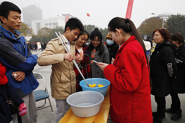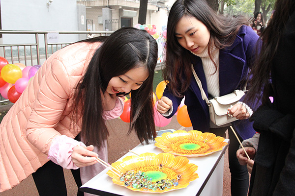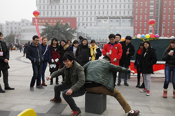 游园活动丰富多彩。学生舞团的《鼓乐新春 狮舞吉祥》《太阳出来喜洋洋》等文艺演出热情四溢,增添喜气洋洋的节日氛围;“撕名牌”、“飞镖达人”、“抢板凳”、吹蜡烛、踩气球、夹弹珠等活动,与体育竞技相结合,增强师生竞争意识和开拓进取精神;“你画我猜”、“智力运球”、“乒乓奔跑赛”、两人三足、接力赛、叠报纸等游戏集趣味性、娱乐性于一体,激发师生团队意识,展示昂扬向上的精神风貌。