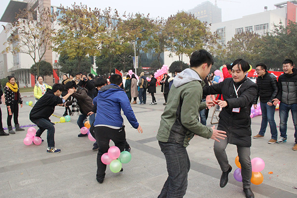 节日中的校园暖意融融、热闹非凡。鲜艳的条幅、缤纷的海报、动人的旋律与琳琅满目的奖品,交相辉映,相得益彰;师生们个个热情似火、兴味盎然、争先恐后、踊跃参加,感受游戏的喜悦和新年的欢乐;校领导深入到游园活动中,与师生一同跳起欢乐的锅庄,参加妙趣横生的游戏,享受美好的节日时光:到处一派喜庆祥和景象。即将到来的新年充满幸福、欢乐、文明的气氛。川音人凝心聚力,以更加饱满的激情迎接新的一年。