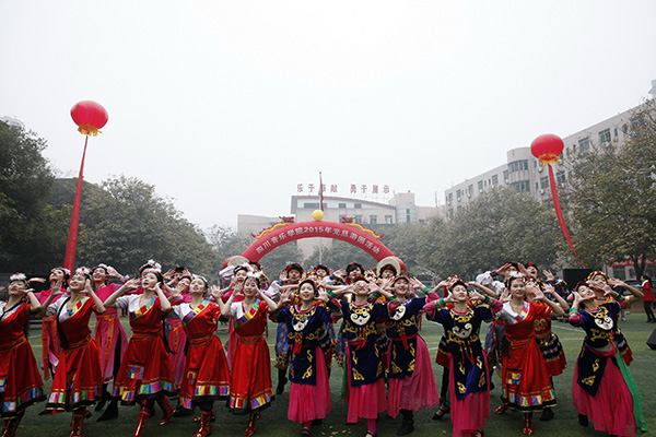 学校领导亲临活动现场,与万名师生同娱同乐,喜迎2015年的到来。