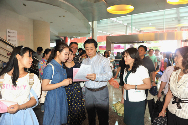 院长林戈尔,党委副书记文云英、侯钫,副院长刘立云、孙洪斌率相关部门负责同志对新生报到处、缴费处、校本部及北校区的新生宿舍等环节进行了仔细的询问和指导,要求所有工作都要以学生为本,以“热情,安全,有序”为目标,做好迎新工作。校领导与报到的学生和家长沟通交流,鼓励学子尽快适应新生活,与舍友融洽相处,投入到精彩的大学学习、生活中来,并感谢家长对学校的信任与支持。