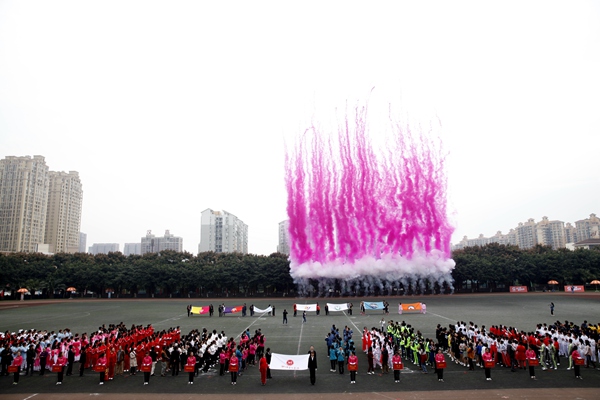 院长林戈尔教授宣布伟德bv国际体育2015年全校运动会正式开幕,体育场礼炮腾空而起、烟花缤纷。