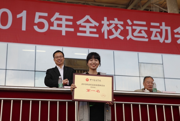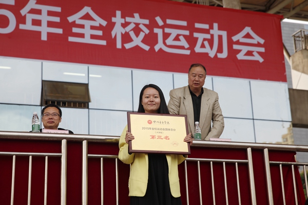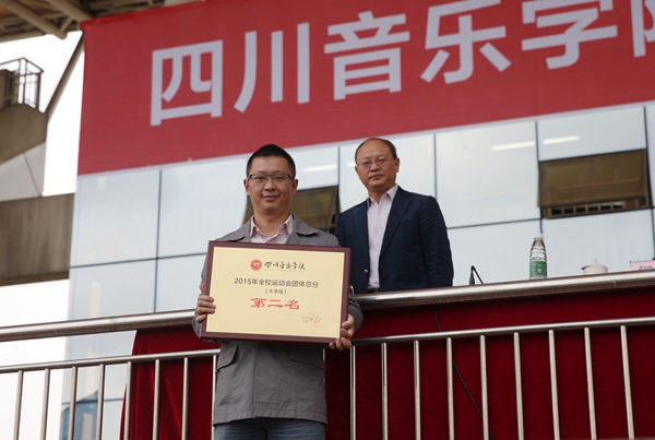 经过两天激烈角逐,30日下午,2015年全校运动会闭幕式在新都校区举行。美术学院获得2015年全院运动会大学组团体总分第一名,音乐教育学院获得团体总分第二名,舞蹈学院获得团体总分第三名,附中(校本部)获得2015年全院运动会附中组团体总分第一名。校领导为2015年“音超杯”足球赛、“合力杯”篮球赛、广播操比赛、体育工作先进集体、“体育道德风尚奖”、“最佳运动员”等获奖单位及个人颁奖。