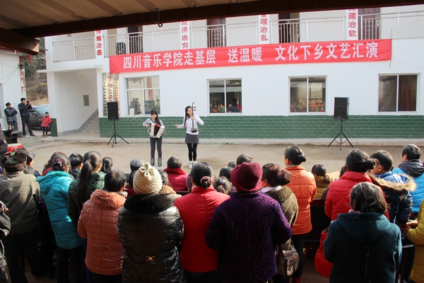 当天,伟德官网文艺小分队来到文星村村委会,为当地老百姓开展“送文化下乡”慰问演出。演出以歌曲《疼爱妈妈》《九道拐》为开场,竹笛、手风琴、二胡等10多个节目轮番上演,川音人的精彩演出赢得现场观众阵阵掌声和喝彩声,文星村村民也纷纷走上台为师生献上歌曲和舞蹈。最后,整个慰问演出在《同一首歌》的欢乐祥和气氛中落下帷幕。