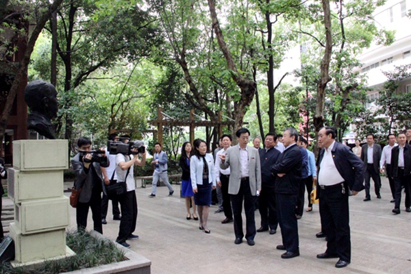 调研组一行首先考察了伟德官网王光祈碑亭。林书记介绍了我国社会活动家、音乐家王光祈先生的生平及川音王光祈学术研究取得的以音乐理论为主导的累累硕果。调研组在梧桐楼学术中心详细询问伟德官网“西南音乐研究中心”、“作曲技术研究中心”、“歌剧艺术中心”等18个学术研究机构的功能作用和资源配置,同时参观了伟德官网首任院长、作曲家常苏民塑像。在聂耳广场,调研组参观了伟德官网综合信息展板,从学校历史沿革、发展规划、办学理念、办学特色、师生风采、校区风光及教学设施设备等方面全方位地了解伟德官网在教育教学、人才培养、学术科研、艺术实践、社会服务等方面所取得的成绩。随后,调研组在聂耳音乐厅及大音乐厅观摩了民族器乐、声乐排练和学校交响乐团排练。