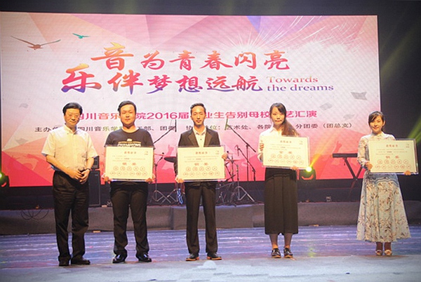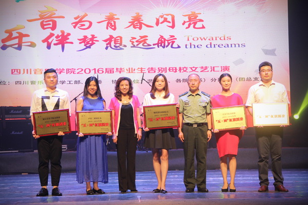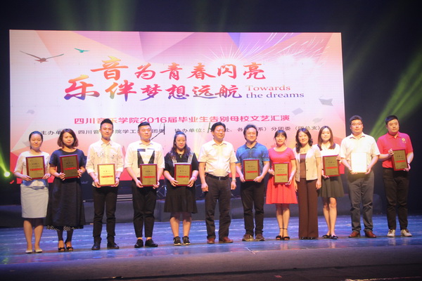 晚会间隙,观看晚会的领导分别为学校创新创业获奖团队、2015--2016学年度“五四红旗团委”和“十佳基层团委书记”进行了颁奖。