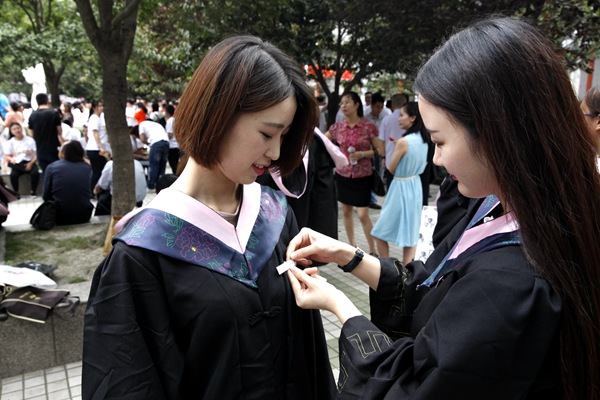 学校领导向毕业生代表颁发毕业证书,共同见证这个神圣的时刻。