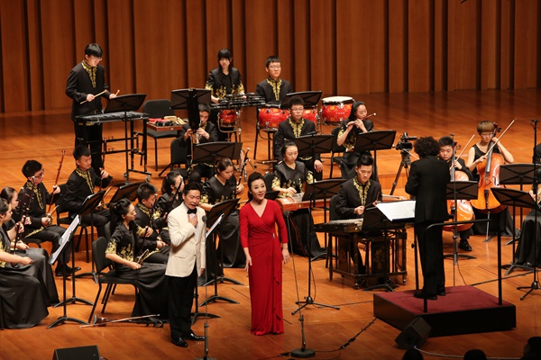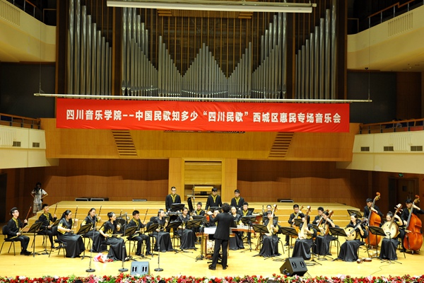 国家大剧院的演出由伟德bv国际体育与中国音乐学院联合举办,音乐会上除了主要由伟德bv国际体育老师们演唱地道的四川民歌外,中国音乐学院著名歌唱家吴碧霞、博士生周强、本科生蓝峻、于涵、李鑫、黄欣等也加盟演唱了《绣荷包》、《溜溜山歌》、《秀才过河》等四川民歌。