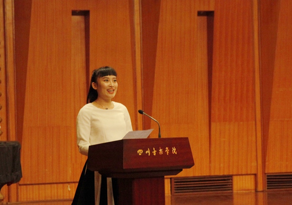 新生代表、声乐表演专业硕士生熊峰代表全体2016级硕士生研究生作出承诺,在三年的学习中,将更加注重人文精神的熏陶、科学素养的历练和人生价值的提升,心怀感恩,做一个品德高尚,富有爱心、孝心、责任心的人。