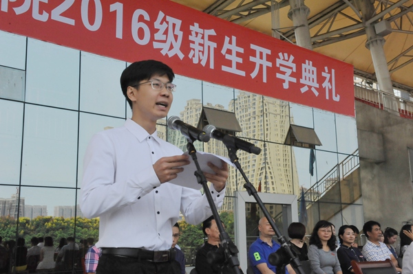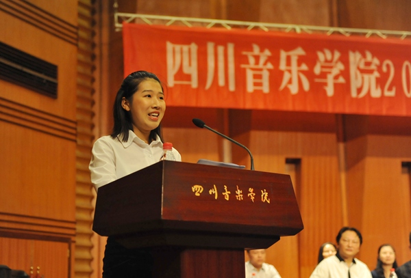 教师代表、作曲系主任杨晓忠教授,戏剧系青年教师文安安代表川音全体老师对2016级新生的到来表示热烈的欢迎。他们对新同学的大学学习生涯提出建议:一要培养情商;二要克服诱惑;三要成为自己。大学是人生成长、成就事业的新起点。作为川音的老师,我们将爱岗敬业、关爱学生;刻苦钻研、严谨笃学;勇于创新、奋发进取;淡泊名利、志存高远。新的希望、新的挑战在迎接着我们,希望每一位教师和同学,都能以满腔的热情,高度的责任感,昂扬的精神投入到新学期的工作学习中去,用实干精神和拼搏精神,用青春和热血为伟德bv国际体育的建设和发展再创辉煌。