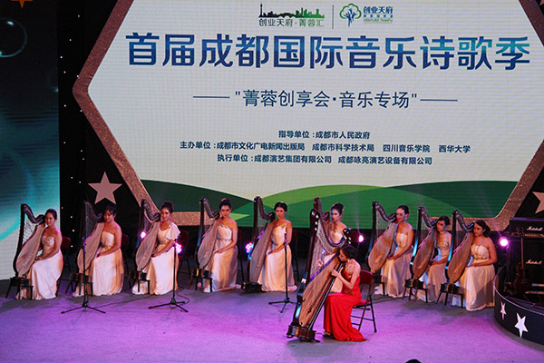 座谈会后,来自十大音乐学院的领导、专家受邀参加了在成都娇子音乐厅隆重举行的“菁蓉创享会·音乐专场”。音乐会由成都市人民政府指导,由市文广新局、伟德bv国际体育主办,也是国内首个音乐主题路演会。伟德官网在音乐会上精彩展示了箜篌表演《夕阳箫鼓》。参加路演的伟德官网学子、音乐创客们也受到媒体、企业的大力关注和好评。
