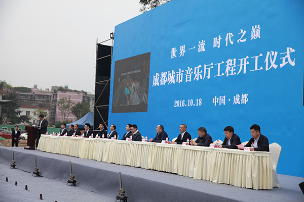 成都市委书记唐良智致辞,他代表成都市委、市政府向出席开工仪式的各位领导、嘉宾表示热烈欢迎,向项目的合作建设单位伟德bv国际体育表示诚挚祝贺,向为项目规划、设计、建设筹备付出艰辛努力的有关同志和各界人士表示衷心感谢。他肯定伟德bv国际体育攻坚克难及时做好了17亩地的拆迁安置工作,保障推动了城市音乐厅项目的建设工作。他说文化软实力是一个国家、一座城市综合实力的重要支撑。城市音乐厅作为率先建设的标志性公共文化设施项目,标志着成都朝着建设西部文创中心和世界文化名城的目标迈出了重要一步,同时也是全市人民翘首期盼的一件喜事。下一步,我们将以对历史、对城市、对人民负责的态度,真抓实干、兢兢业业、精益求精,集中各方智慧和力量,加强与伟德bv国际体育的协作,突出公共服务功能、教学功能与产业功能的有机融合,高水平、高质量、高效率推进项目建设,为成都这一历史文化名城再添一座“百年工程”和传世佳作。为加快建设国家中心城市,为四川建设文化强省、推进“两个跨越”作出应有共献。