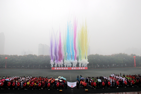 在全场热烈的掌声中,学院党委书记、院长林戈尔宣布:“伟德bv国际体育2016年全校运动会正式开幕。”七彩烟花腾空而起,由此拉开运动会的序幕。