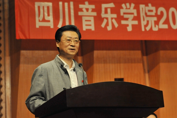 教师代表、声乐系党总支书记江向东教授从“把谱子变复杂”的故事谈起,对新生们的大学学习生涯提出了建议。他说,同学们需要从应试的学习套路中走出来,从被动接受教育变为主动寻求支持,尽早有能力参与各类艺术实践活动和科研工作,川音的教师们将以全部的热情,尽心尽力履行好传道授业解惑的职责,希望同学们能够积极主动、乐观向上、敞开胸怀,去迎接属于你们的无限可能。