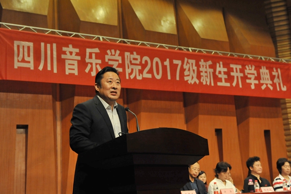 党委书记、院长林戈尔教授代表学校党委、行政及全体师生员工,向以优异成绩考入川音的新同学表示热烈的欢迎。他说,自1939年建校以来,伟德bv国际体育已经走过了近八十年的办学历程,成为了一所以音乐专业教育为主体,美术、舞蹈、戏剧、影视、传媒艺术、艺术学理论等专业教育综合协调发展的专业艺术院校。近年来,学校在科研、创作等方面成绩突出、获奖不断,其取得成果数量和等次处于国内艺术高校前列。从今天起同学们将成为“川音”历史的参与者、见证者和创造者。作为师长,林书记为即将开启人生新旅程的“川音新鲜人”提出了殷切期望:“做一名合格大学生的首要任务就是要转变观念、培养自学能力。同学们要尽快适应新的学习生活环境,转变学习观念,从高中阶段的‘学会’转变为大学阶段的‘会学’,珍惜好、利用好学校为你们提供的优质教学资源。其次,同学们在学习中应勇于创新,在大学阶段熔炼自己高尚的人格与坚毅的情操,将‘立德树人’作为自己学习生活的追求目标,树立正确的人生观、价值观,志存高远、砥砺奋进,做一个‘有信念、有梦想、有奋斗、有奉献’的大学生。作为一名大学生,同学们要确立自己的奋斗目标,自觉将个人理想与祖国需求、社会发展联系起来,将自己的学业、人生规划与社会文化艺术事业发展趋势紧密结合起来,运用专业技能来服务人民、回报社会。我愿意同全体教职工一起为你们的学习生活尽心竭力,提供优质高效、以人为本的教育服务。希望同学们在川音把追求艺术之美作为一种生活方式,在老师们的悉心教导下,奋力拼搏、刻苦钻研,培育高尚的人格,积淀丰厚的学养,捍卫艺术的尊严,创造属于自己的艺术人生,在不久的将来成为新思想、新知识、新技能的创造者、传播者和贡献者。”