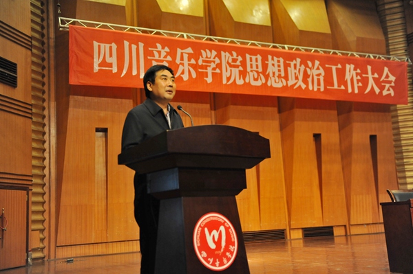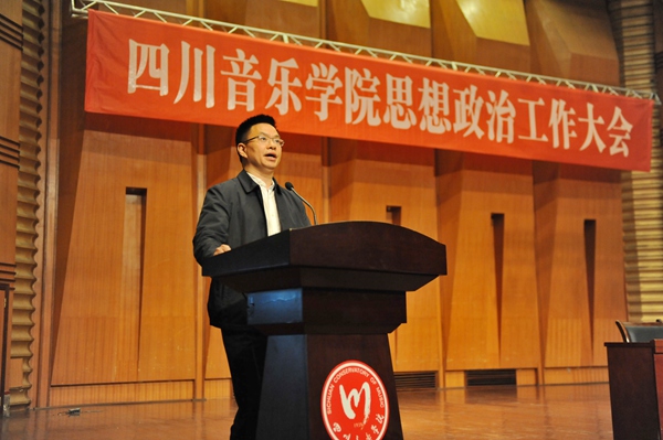 党委书记洪流指出,习近平总书记在全国高校思想政治工作会议上强调加强和改进思想政治工作,事关办什么样的大学、怎样办大学的根本问题,事关党对高校的全面领导,事关中国特色社会主义事业后继有人,是一项重大的政治任务和战略工程。我们务必要高度重视,进一步增强“四个意识”,强化政治担当,提高政治站位,切实把思想和行动统一到习近平总书记的重要讲话精神上来,统一到中央、省委对加强和改进高校思想政治工作的一系列部署上来,切实抓好思想政治工作。第一,要紧紧围绕“一条主线”抓思想政治工作,即深入学习宣传贯彻党的十九大精神,坚定不移推动习近平新时代中国特色社会主义思想进教材进课堂进头脑。一要加强教材建设,筑牢“三进”基础。二要加强课堂管理,巩固“三进”中心环节。三要加强理论武装,实现“三进”的最终目的。第二,要紧紧围绕“一个目标”抓思想政治工作,即围绕立德树人根本任务,牢牢把握提升思想政治素质这一重点,着力培养德艺双馨艺术人才。一要加强理想信念教育,发挥塑魂铸魂作用。二要加强社会主义核心价值观教育,发挥强基固本作用。三是要加强思想道德建设,发挥引领凝聚作用。第三,要紧紧围绕“一个担当”抓思想政治工作,即坚定文化自信,发挥学科优势、专业优势,践行文化担当,弘扬传承中华优秀传统文化。一要加强校园文化建设,切实增强文化的感召力。二要加强实践育人,切实增强文化的感染力。三要鼓励扶持原创,切实增强文化的凝聚力。第四,要紧紧围绕“一个总要求”抓思想政治工作,即全面贯彻落实新时代党的建设总要求,牢牢掌握党对意识形态工作的领导权、管理权、话语权,坚持党对学校思想政治工作的全面领导。一是要全面加强党建工作。二是要全面落实意识形态工作的政治责任、领导责任。三是要全面强化意识形态阵地管理。洪书记强调,做好学校思想政治工作意义重大、责任重大,我们要以钉钉子的精神狠抓落实,结合当前学校工作实际,把做好思想政治工作与近期省委要求开展的“大学习、大讨论、大调研”活动统筹起来,以学习讨论调研的成果推进思想政治工作开展,为培养又红又专的新时代合格大学生、推动学校持续健康发展提供坚强的思想保障。
