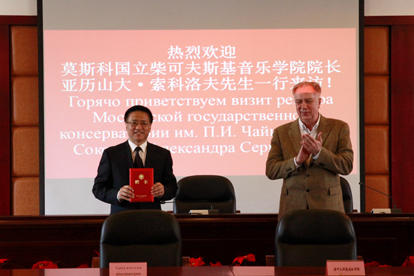 会上,索科洛夫向周院长颁发了柴可夫斯基国际青少年音乐大赛联合主席的聘书。