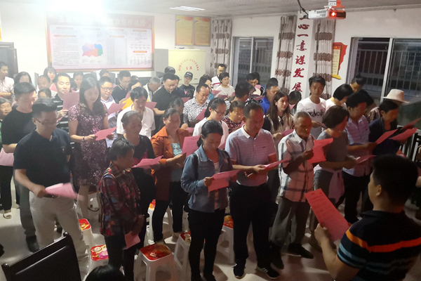 村庄更美了,房屋更整洁了,村民们的精神文化生活也在同步丰富。12日晚,扶贫组在村委会开展了“‘川音文星一家亲、同心共筑小康梦’—歌颂新中国成立七十周年”主题农民夜校教学活动,吸引了文星村及周边村庄70人参与。教学活动一改传统政策宣讲、农技培训等农民夜校培训内容和方式,将生动的文化活动和政策宣讲相结合,让农民在寓教于乐的氛围中,学习政策,丰富文化生活,提升精气神,聚集正能量。课堂教学在侯钫副书记的组织下,全体学唱《我和我的祖国》。通过同唱一首歌,抒发大家爱国之情,表达对伟大祖国的衷心依恋和真诚歌颂。夜校活动中,侯书记和昭化区委常委、宣传部长王壮还分别带领上课村民和帮扶组教师进行了PK对歌,把课堂教学推入了高潮。活动间隙,学校青年教师演奏、演唱了《月亮代表我的心》《草原牧歌》等节目。形式新颖的课堂教学、精彩而深情的文艺活动点燃了村民们热情,文星村村民左勇主动邀请与何娇老师即兴献唱《永远是朋友》,饱含深情的演唱感人肺腑,在帮扶中结下的深情厚谊也伴随歌声久久回荡在文星村的夜空中。