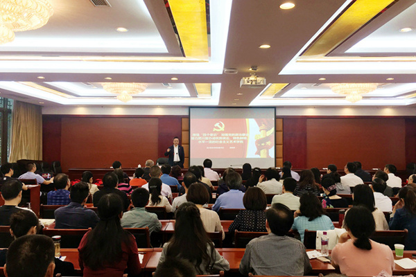 为进一步引导学校党员、干部发扬自我革命精神,帮助党员干部更加精准的把握主题教育精神,扎实推进“不忘初心、牢记使命”主题教育,9月29日,伟德bv国际体育“不忘初心、牢记使命”主题教育“党委书记讲党课”活动在香樟园5楼举行。省委第十一巡回指导组组长、十一届省政协常委,原省法制办主任张渝田,以及第十一巡回指导组组员到场参加。学校党委班子成员、全校副处以上干部约140人共同聆听了校党委书记周思源的讲课。