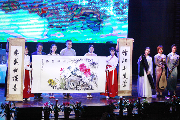 晚会在欢快、喜悦的民乐合奏《盛世欢歌》中拉开序幕,朗诵《祖国到底是什么》深情的描绘了祖国是唱不完的恋歌,是写不尽的美文,表达了对祖国无限的爱恋。《祖国昌盛》将琴箫琵琶、书画舞蹈等动静两种艺术有机融合,别具特色的表达了川音人对新中国70华诞的深深祝福。大气磅礴的双排键演奏《我的祖国•红旗颂》和深情款款的歌舞《红旗飘飘》用两种不同形式表达着川音人的爱国深情;原创歌剧《大江船夫》再现了三峡船工在中共地下党员的带领下,冒着生命危险运送战略物资英勇事迹;舞蹈《那年剪短发》用优美的舞蹈语言表达了青年人与祖国共成长的故事;《新声代》用艺术与科技相融合的探索性交互表演形式,展示了川音人不断探索,努力创新的科学精神。歌舞《扶贫组歌联唱》唱出了川音人的责任担当和在脱贫攻坚中取得的成绩;“世界上有很多美丽的地方,可是我最爱的只有你,可爱的中华”是歌曲《我爱你,中华》述说的中华儿女对祖国诚挚的爱;晚会最后,全体演员和观众挥舞手中的五星红旗,齐唱《歌唱祖国》,将晚会推向了高潮,歌声久久回荡在川音上空,这是川音人对盛世中国的赞美与祝福,也是川音人对美好明天的期待!