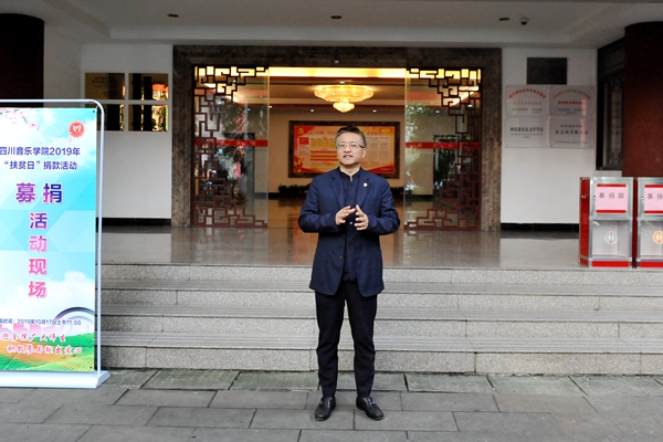 周思源同志在活动现场向全院教职工发出倡导:今年是新中国成立70周年,是深入学习贯彻习近平新时代中国特色社会主义思想和党的十九大精神的重要一年,也是决胜全面建成小康社会第一个百年奋斗目标的关键之年。我们组织开展“扶贫日”捐款活动就是要进一步引导全校教职员工关注贫困问题、关爱贫困人口、关心扶贫工作,进一步动员大家积极参与脱贫攻坚,形成人人皆愿为、人人皆可为、人人皆能为的良好氛围。“扶贫日”捐款活动是一项政治工程、一项民心工程,也是实现高质量发展的拓展工程,责任重大、使命光荣。希望大家积极参加,用实际行动彰显川音人践行“乐善好施、扶贫济困”的中华传统美德,传播“慈善与关爱”正能量。