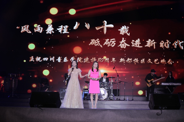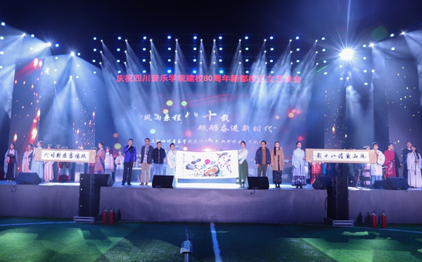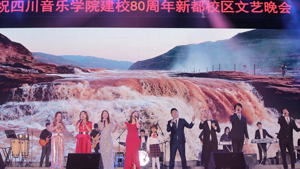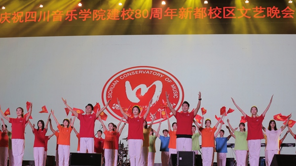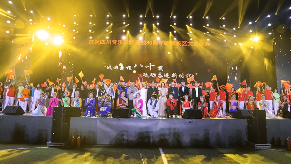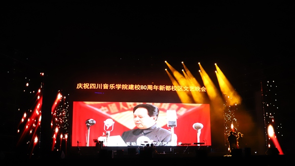 学校院长刘立云,副院长牟文虎,成都市新都区委,区政府、区人大、区政协,规划与自然资源局、文广局、卫生局、新都街道办事处等三十多个部门的领导和工作人员,西南石油大学、成都医学院等兄弟院系领导,学校各职能部门负责人,各院系的党政领导,离退休教师、校友及在校师生共8000余人观看了晚会,共庆川音八十华诞。