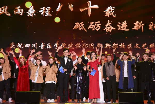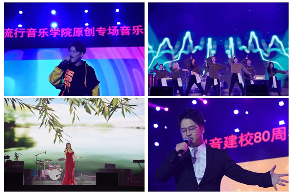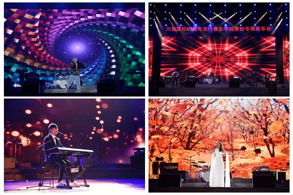 晚会上,师生用14首精彩的原创歌曲,共庆母校八十华诞。热情似火的开场舞流行舞蹈《Dream Journey》开启音乐会之旅,展现了川音学子阳光自信的形象。独唱《昂首》《中国,我为你歌唱》《感动》和合唱《顶天立地》展示了中华儿女奋勇拼搏、为民族复兴昂首向前的伟大征程;独唱《山巅》《阿拉里哟》《想起你常说》《You are so beautiful》《秋之获》抒发了川音人对母校的感恩之情;器乐曲《追逐》和《远航》、爵士乐曲《梦想的旅程》、独唱《察觉幸福》和《Never Mind》、舞蹈《Chun-li》展示川音人追梦前行、砥砺奋进,努力为母校再添光彩。