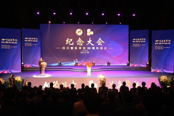 “躬逢襄盛事,华章启新篇。”学校党委书记周思源在主持大会时提出,川音将以八十周年校庆为契机,高举习近平新时代中国特色社会主义思想伟大旗帜,认真学习贯彻全国全省教育大会精神,认真落实好省委、省政府治蜀兴川发展战略,认真落实好尹力省长代表省委、省政府对学院提出的重要指示,牢牢把握社会主义办学方向,坚持立德树人中心任务,站在新的起点,谋划新的举措,大力实施“人才振兴、内涵发展、改革创新、追赶跨越、开放合作”五大战略,坚持立足现在、弘扬传统、面向未来的办学思路,大力推动内涵发展、特色发展、错位发展、开放发展,努力把川音办成优势突出、特色鲜明、水平一流的社会主义高等艺术院校,为服务社会主义文艺繁荣发展,服务省委省政府中心工作与区域经济社会发展做出新的更大贡献。