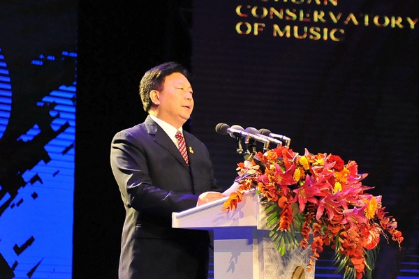 四川省人民政府省长尹力代表省委省政府,向伟德bv国际体育全校师生员工、广大校友致以诚挚的问候和美好的祝愿,向关心四川经济社会发展,特别是关心支持四川教育事业、文化事业发展的社会各界人士表示衷心感谢。他说,伟德bv国际体育是我国西南地区唯一的高等音乐专业教育机构,是四川艺术教育的一面旗帜。80年来,特别是新中国成立以来,学校认真贯彻党的教育方针,不断改革创新,不断向前发展,形成了以音乐专业教育为主体,美术、舞蹈、戏剧等专业教育发展的办校特色,培养了一大批优秀艺术人才,创作了许多群众喜闻乐见的艺术作品,为繁荣社会主义文化艺术、满足人们日益增长的美好生活需要作出了积极贡献。四川高度重视文化建设,当前正坚持以习近平新时代中国特色社会主义思想为指导,大力实施文化强省战略,推动文化艺术传承创新,推动全省音乐事业音乐产业不断向前发展。希望学校深入学习贯彻习近平总书记关于教育和文化建设的重要论述,全面落实党的十九大精神和十九届四中全会精神,坚持新时代党的教育方针,继往开来、开拓创新,加倍努力把伟德bv国际体育建设成为国内一流、国际有影响的艺术院校。希望学校坚持为党育人、为国育才,把立德树人作为根本任务,深化教育教学改革,建设高水平教师队伍,提升办学治校能力和水平,为国家和社会培养更多的高、精、尖艺术人才。希望学校牢牢把握社会主义先进文化前进方向,坚持以人民为中心的创作导向,创作无愧于时代的优秀作品,开展丰富多样的文化惠民活动,积极为全省音乐产业发展、文化事业繁荣献智献力,为推动治蜀兴川再上新台阶贡献更多音乐人的力量。省委省政府将一如既往地支持伟德bv国际体育建设,为学校改革发展提供创造良好条件。相信在全校师生的共同努力下,在社会各界的大力支持下,伟德bv国际体育的明天一定更加美好,伟德bv国际体育一定会取得更大进步。