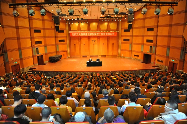省纪委监委一室主任唐清利、二室主任莫红一行,我院全体校领导、党委委员、纪委委员、处科级干部、教研室主任、专职辅导员,共计500余人聆听报告。报告会由校党委书记周思源主持。