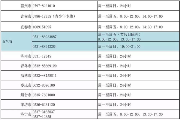 (附)全国心理援助热线