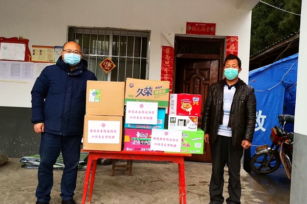 疫情发生时,正值新春来临之际,大量的学生、务工人员返村,由于封闭式管理,加之帮扶村地处偏远,造成了生活物资一定短缺,尤其是粮油等生活必需品。考虑到这一突发状况,学校党委高度重视,立即启动帮扶预案,指派党委办公室(扶贫办)作为牵头单位,协助驻村工作队在最短时间制定捐赠帮扶方案,并通过多方努力,第一时间将采购的405袋大米、945斤食用油,安全有序送到碉房村、火灯村全村老百姓家中,缓解两村群众生活燃眉之急,携手共克时艰。此外,考虑到文星村正面临“新型冠状病毒疫情、非洲猪瘟疫情、禽流感疫情”三重疫情防控实际情况,特为全村在家230户农户捐赠了消毒液、洗手液、肥皂等杀菌消毒物资,协助确保生产生活安全稳定,打赢疫情防控阻击战。