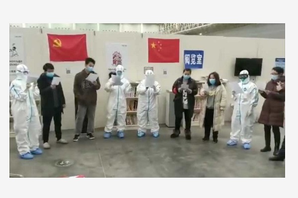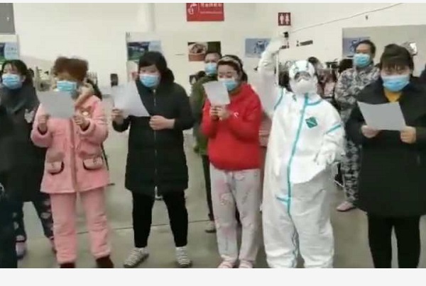 2月28日,在由国家(四川)紧急医学救援队援助湖北所管辖的武汉汉阳方舱医院B区,开展了一场“我们都爱你啊”小型医患互动演唱会。