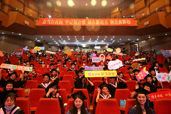 时光匆匆,回忆满满,川音见证了他们最美丽的青春,他们也见证了川音发展的历程。毕业既是终点,又是起点,2020届的毕业生即将带着母校师长的祝福、教导与嘱托奔向祖国的四面八方,一路走来,有欢笑也有泪水,有高远的情怀理想,也有现实的喜怒哀乐,祝愿大家在人生的新征程中,一路披荆斩棘,勇敢开拓出光明的未来,采撷到成功的硕果。“外面的世界很精彩,外面的世界很无奈”, 无论再过多少年,无论你们走到那里,川音都将是你们温暖的家,你们永远都是母校优秀的孩子。希望同学们把母校的殷切期望,把老师的几多叮咛,化为成长的动力,从这里扬帆起航,迎接未来。