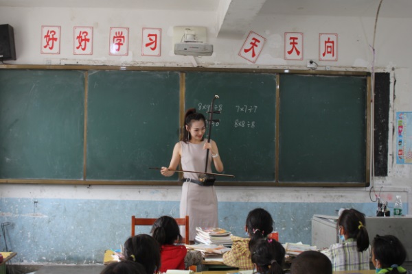 课堂上,贾磊老师通过绘画的方式让学生们了解情绪的变化与调节,借助艺术手段让学生建立自信,引导学生进行创造和消解学习带来的挫败感和无助感。任娟老师的民歌示范演唱、张帅老师的唢呐演奏、孙潇澳老师的二胡演奏,老师们把传统音乐文化带进每一间教室,让同学们更加直观的感受到传统音乐文化的独特魅力。