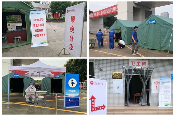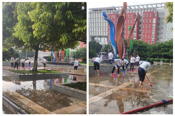 在两校区校门口搭建体温检测点,学校为返校学生严格进行体温检测;并设立发热隔离观察室,对前来就诊的学生进行预检分诊,体温异常的立即进行复诊并隔离。此外,总务处还开展全校环境卫生整治和消毒,公共区域消毒落实到人,重点做好人员密集场所的清洁消毒、通风换气。