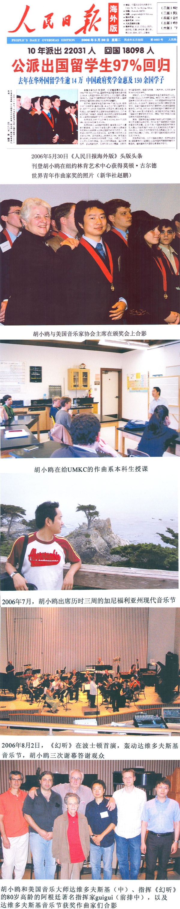 胡小鸥喜获肖斯塔科维奇作曲比赛优秀作品奖