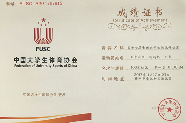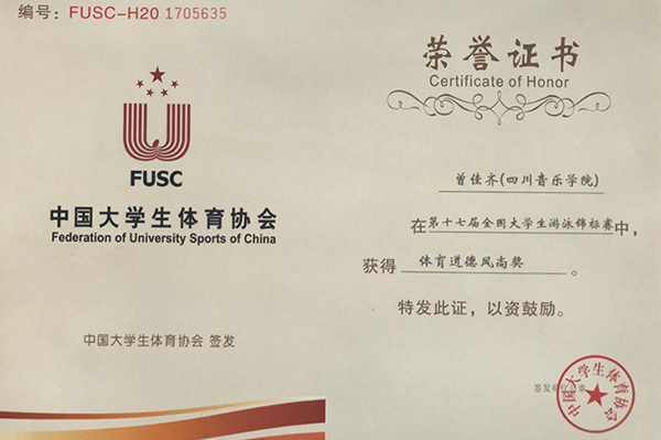 经过紧张激烈的角逐,伟德官网选手充分发扬顽强拼搏、永不放弃的体育精神,再次超越自我取得了骄人战绩。由音乐学系2014级学生杨起帆获得了女子100米蛙泳金牌、200米蛙泳银牌的好成绩,乐器工程系2015级学生易文钦获得了女子50米仰铜牌,管理系2014级学生王雅馨获得了女子100米自由泳第七名,音乐学系2014级曾佳齐获得了女子200米个人混合泳第七名并荣获体育道德风尚奖,国际演艺学院2016级学生权欢获得了女子50米蛙泳第七名。传媒学院2014级学生梁笑天、2015级学生万诗雨在本次比赛中担任裁判宣告,获得中国大学生体育协会游泳分会点名表扬。