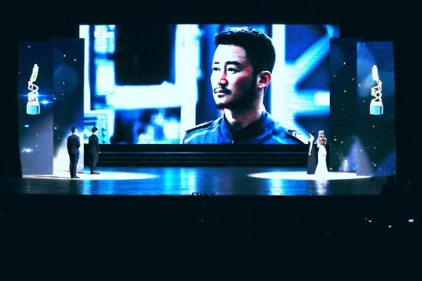 颁奖典礼上,学校获奖团队还现场表演了电影《流浪地球》片段配音展示,获得现场观众及《流浪地球》制片人龚格尔先生的好评。