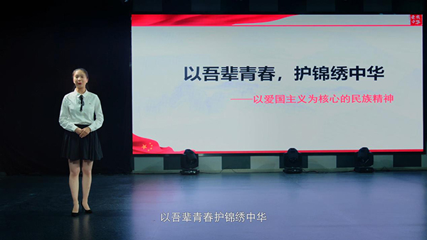 在马克思主义学院教师团队的悉心指导下,王淼同学不断调整和打磨讲课内容,修改PPT,录制授课视频。期间,学校党委副书记侯钫还组织党委宣传部、党办、教务处、学工部相关人员观看授课视频,并提出进一步修改意见。最终以主题为《以吾辈青春 护锦绣中华——以爱国主义为核心的民族精神》的授课视频呈报四川省教育厅。